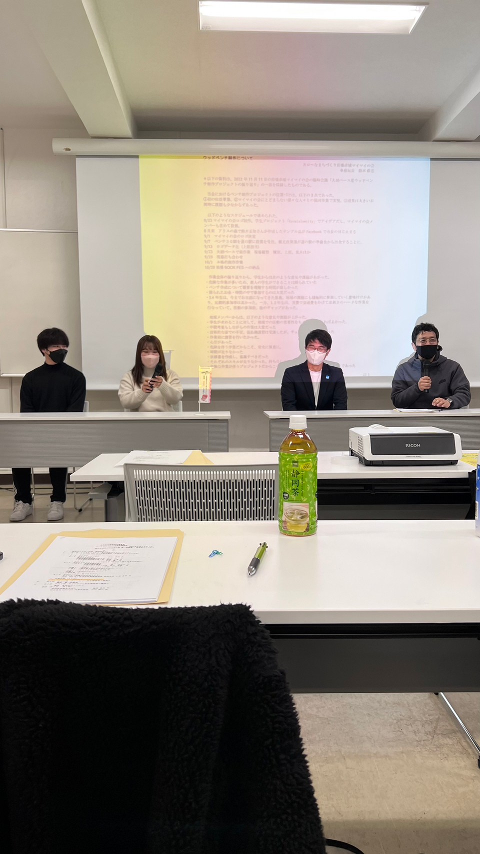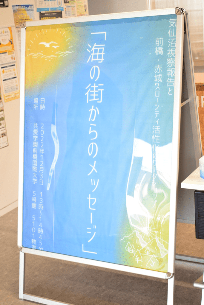 第一部のトークセッションでは、前橋赤城マイマイの会からのベンチ制作報告、学生からの制作報告として鈴木先生、共愛の鈴木伶、栗原千夏さん、東洋の杉谷蓮がマイクを握りに握った。